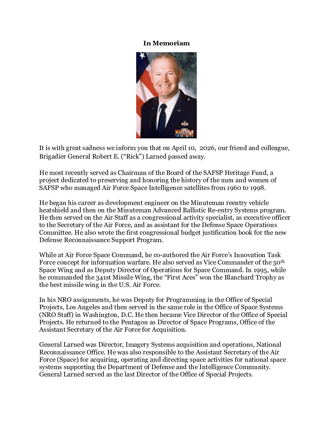 1996-98 Brigadier General Robert E. Larned